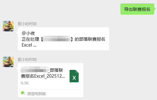默认导出最新赛季的报名信息,可以在指令后面加“赛季日期”导出指定赛季数据