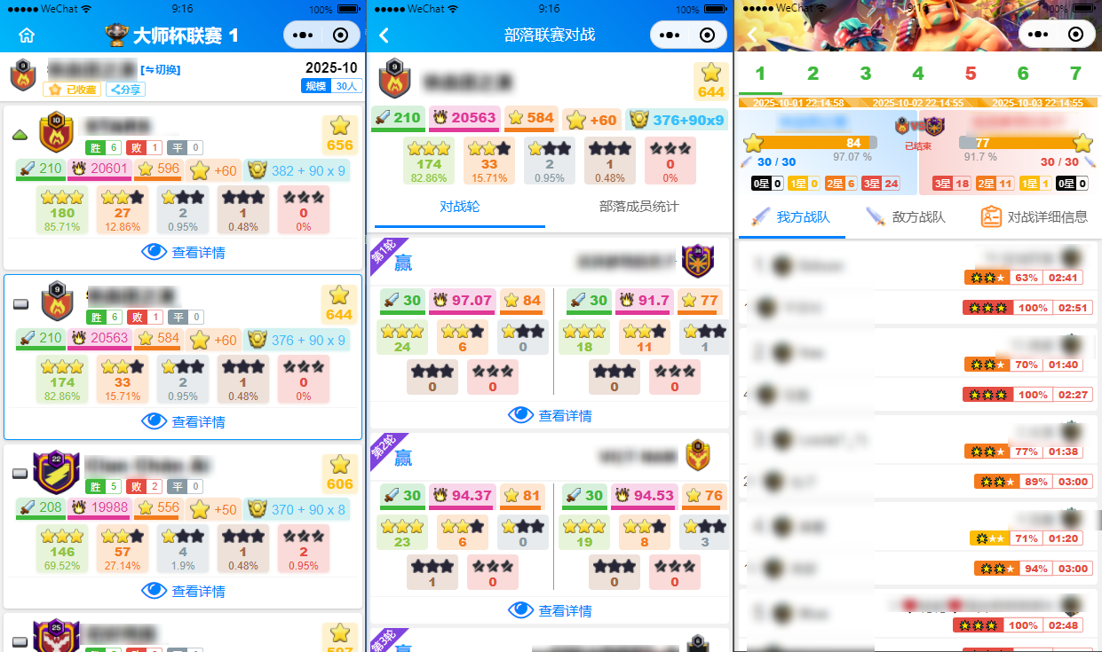 - 查询部落联赛全部对战详细数据