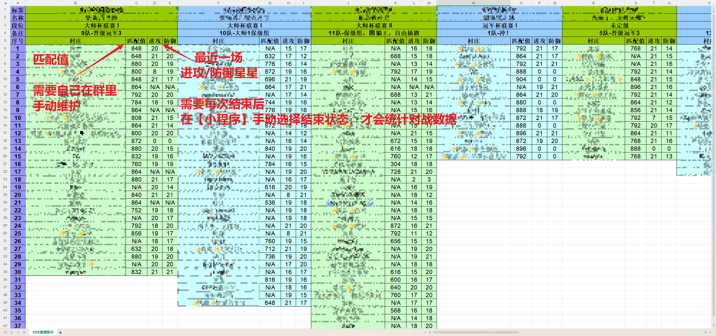 - 匹配值管理: 管理员可以手动填写成员的匹配值,且在开启多个部落联赛时,可根据匹配值进行成员分配。